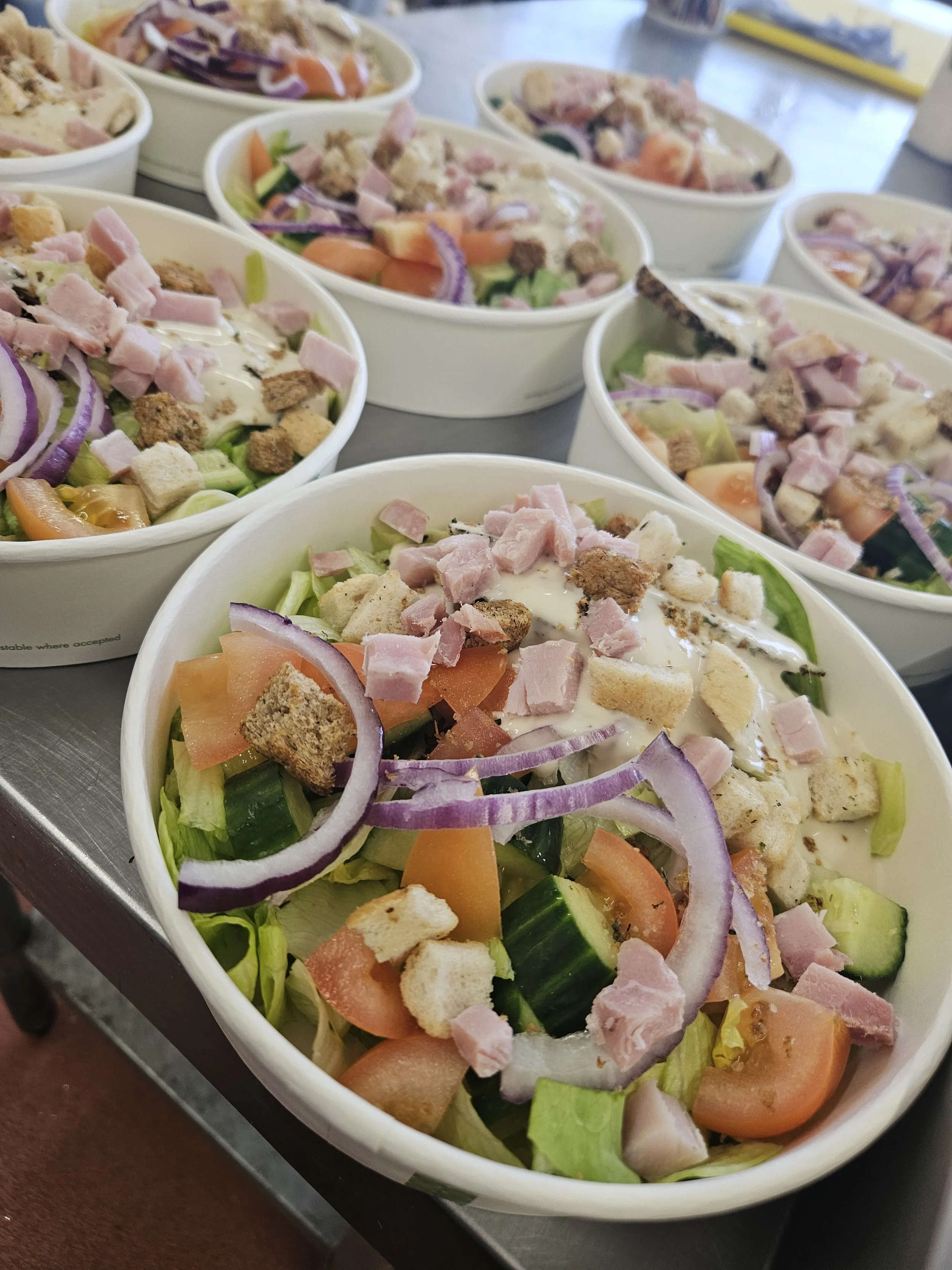 Our baguettes are baked fresh every morning. By lunchtime, they're filled with homemade goodness and in your hands.